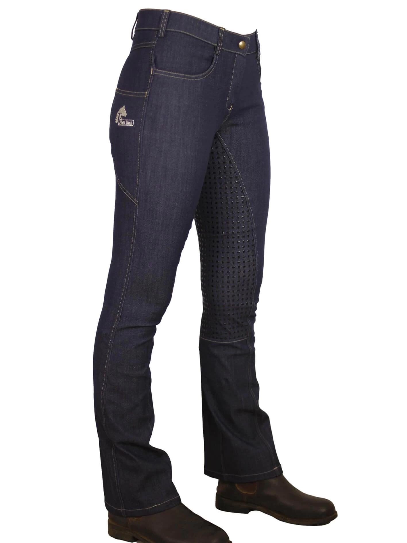 Bootleg denim horse riding jeans, all the everyday comfort of jeans, with the riding comfort of a pair of jods.Â